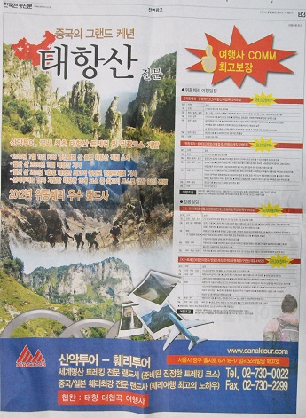 安陽(yáng)市旅游局在韓國(guó)觀光新聞報(bào)上的專題宣傳廣告