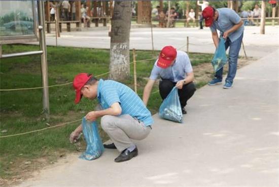 在這次活動過程中,志愿者們頭戴小紅帽,手拎垃圾袋,兵分兩路對虢國公園沿途路面、草坪及綠化帶里的煙頭、紙屑、塑料袋、果皮等垃圾進行清理。大家時而彎腰、時而蹲下,不怕臟、不怕累,認真負責,密切配合,經(jīng)過一個多小時的勞動,路面草坪及綠化帶里的垃圾被清理的干干凈凈,公園內(nèi)整個環(huán)境變得整潔有序。
