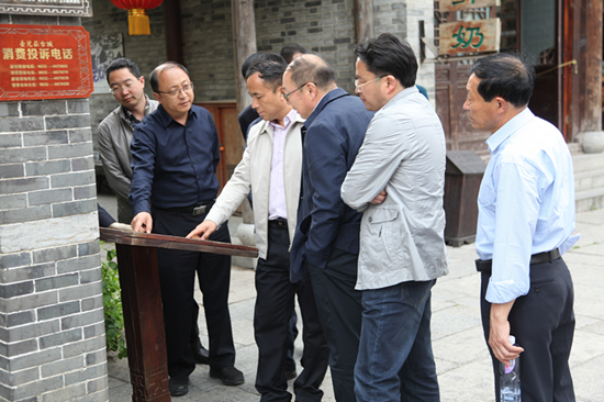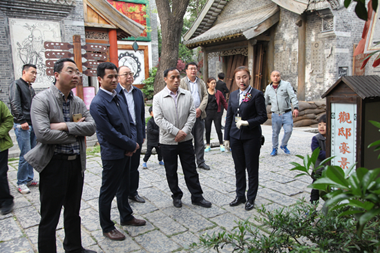 位于山東省南部的臺(tái)兒莊古城,歷史文化悠久,有著“天下第一莊”之譽(yù),是臺(tái)兒莊大戰(zhàn)的發(fā)生地。21日下午,考察組一行在棗莊市旅服委副主任李志宏,臺(tái)兒莊區(qū)旅服局副局長(zhǎng)張輝的陪同下,參觀考察了臺(tái)兒莊古城,詳細(xì)了解臺(tái)兒莊古城重建模式、文化旅游產(chǎn)業(yè)發(fā)展方面的經(jīng)驗(yàn)做法。臺(tái)兒莊古城面積2平方公里,53處戰(zhàn)爭(zhēng)遺跡保存完好,于2009年啟動(dòng)重建,現(xiàn)已成為集物質(zhì)文化遺產(chǎn)、非物質(zhì)文化遺產(chǎn)和文化產(chǎn)業(yè)于一體的文化綜合體。李志宏副主任介紹說,臺(tái)兒莊古城旅游歷經(jīng)8年的建設(shè)發(fā)展,景區(qū)日益成熟和完善,現(xiàn)在已經(jīng)是國(guó)家5A級(jí)景區(qū)、全國(guó)首個(gè)海峽兩岸交流基地、首個(gè)國(guó)家文化遺產(chǎn)公園、首個(gè)國(guó)家非物質(zhì)文化遺產(chǎn)博覽園。僅2016年就接待游客300多萬(wàn)人次,旅游綜合收入2億多元;臺(tái)兒莊區(qū)旅服局副局長(zhǎng)張輝還介紹了臺(tái)兒莊區(qū)創(chuàng)建國(guó)家全域旅游示范區(qū)以及在旅游發(fā)展機(jī)制,重點(diǎn)項(xiàng)目、公共服務(wù)體系建設(shè)和綜合監(jiān)管、智慧旅游等方面工作情況?疾旖M一行對(duì)臺(tái)兒莊古城的建設(shè)、經(jīng)營(yíng)、運(yùn)作的經(jīng)驗(yàn)和做法贊不絕口,認(rèn)為臺(tái)兒莊古城的發(fā)展理念、戰(zhàn)略眼光、運(yùn)作模式、旅游開發(fā)等工作經(jīng)驗(yàn)值得學(xué)習(xí)和借鑒,希望下一步加強(qiáng)兩地交流合作,促進(jìn)兩地旅游服務(wù)產(chǎn)業(yè)更好更快的發(fā)展。