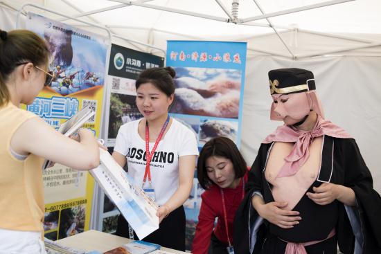 5月19日,“中華源”文化推廣周暨2017中原樂活旅游展在河南省旅游服務(wù)中心廣場拉開帷幕,吸引了來自全省各地的近150個旅游景區(qū)、旅行社、星級酒店及旅游商品生產(chǎn)銷售企業(yè)、旅游文化企業(yè)參展。濟(jì)源市旅游發(fā)展委員會帶領(lǐng)濟(jì)源王屋山、小浪底、五龍口、黃河三峽、小溝背等旅游企業(yè)組團(tuán)參會,通過發(fā)放宣傳頁、旅游畫冊、現(xiàn)場推介、免費門票等形式,助力“中國旅游日”,宣傳濟(jì)源旅游。