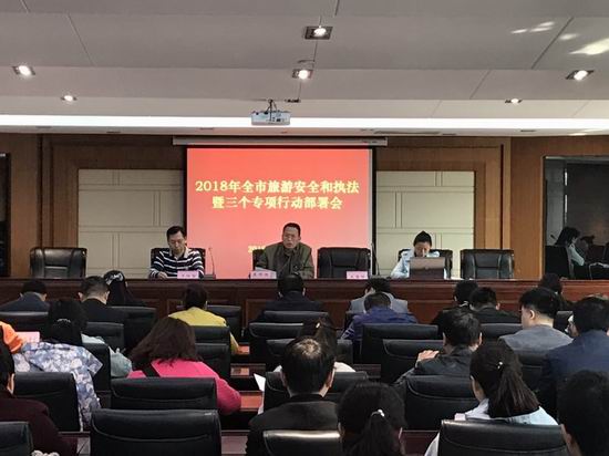 會議圍繞全市旅游景區(qū)安全隱患集中整治、旅游市場主體清理、規(guī)范清理旅行社分社和服務(wù)網(wǎng)點(diǎn)承包掛靠違規(guī)經(jīng)營三個專項(xiàng)行動,對2018年旅游安全工作進(jìn)行了部署安排。就規(guī)范旅行社安全管理制度,印發(fā)解讀了旅行社安全生產(chǎn)制度和應(yīng)急預(yù)案等參考范本;就規(guī)范依法行政、規(guī)范執(zhí)法檢查,開展了旅行社執(zhí)法檢查培訓(xùn),并對與會人員采取以案釋法的方式開展了旅游安全事故警示教育等。會上各縣(市、區(qū))旅游局還遞交了旅游安全生產(chǎn)暨應(yīng)急管理目標(biāo)責(zé)任書。