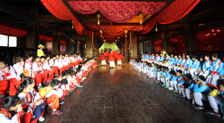 于此同時,恰逢《武宗滅佛》拍攝正酣,國學(xué)古裝之旅和影視劇拍攝來了一次特別的碰撞,大部分孩子們都是第一次走進拍攝現(xiàn)場,充分了解了熒屏上電視劇在幕后是怎樣拍攝的,一次影視拍攝揭秘讓孩子們興奮不已。 焦作影視城特別為孩子們準(zhǔn)備了《自相矛盾》、《鄭人買履》、《桃殺三士》等景點歷史劇目展演,讓孩子們在觀賞歷史劇目的同時真正了解日常所學(xué)成語的出處和典故.
