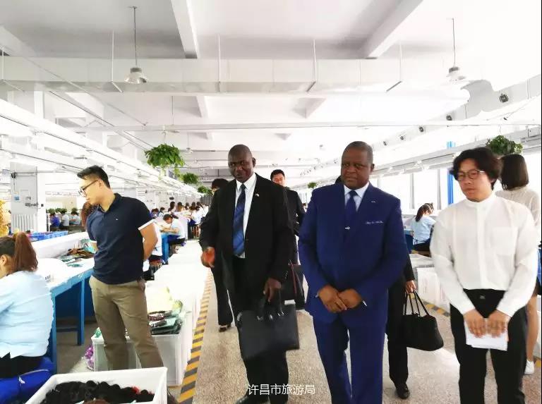 5月4日,利比里亞駐華大使杜德利·托馬斯一行專程赴許昌瑞貝卡化纖發(fā)絲生產(chǎn)園參觀考察。
