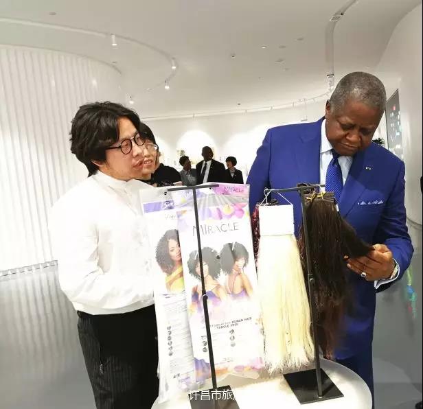 大使一行先后參觀了展廳和發(fā)條生產(chǎn)包裝車間。在展廳,工作人員向大使一行介紹了瑞貝卡公司的基本情況和全球品牌分布。展廳別具特色的假發(fā)歷史文化長廊使代表團詳細了解了發(fā)制品的歷史淵源和世界不同地區(qū)的不同假發(fā)時尚。發(fā)條生產(chǎn)車間的工藝發(fā)條采用公司自主研發(fā)、自產(chǎn)自銷的化纖發(fā)絲,其定型度、顏色的豐富度方面可以超越真發(fā),目前年銷量已達4000萬條。托馬斯大使邊參觀邊向工作人員詢問公司在非洲的生產(chǎn)銷售情況,他表示,瑞貝卡公司的產(chǎn)品在利比里亞市場潛力很大,歡迎瑞貝卡公司到利比里亞投資建廠,他本人和使館也會積極牽線搭橋、促進合作。