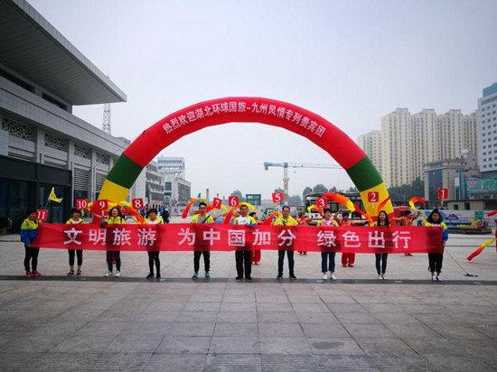 5月19日下午,駐馬店市“文明旅游 為中國(guó)加分 綠色出行”中國(guó)旅游日系列活動(dòng)啟動(dòng)儀式在駐馬店火車東站廣場(chǎng)舉行。儀式由駐馬店市旅游局主辦,駐馬店市新世紀(jì)國(guó)旅、嵖岈山景區(qū)、南海禪寺景區(qū)承辦。駐馬店市景區(qū)、星級(jí)酒店、旅行社、旅游商品企業(yè)代表和武漢旅游專列游客等千余人參加了啟動(dòng)儀式。儀式上,旅游專列游客代表和駐馬店導(dǎo)游代表宣讀了《文明旅游倡議書》,倡議游客“恪守公德,文明游覽,知禮守禮,綠色出行”,倡議旅游從業(yè)者“履職盡責(zé),誠(chéng)信經(jīng)營(yíng)”。