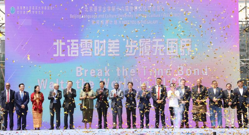 今年舉辦的第十六屆世界文化節(jié)活動由北京語言大學、海淀區(qū)委區(qū)政府主辦,共接待了來自90多個國家和地區(qū)的近千名北語學子與數(shù)萬名社會各界人士。海淀區(qū)委常委、宣傳部長張勁林,北京語言大學黨委書記倪海東,黨委副書記馬貴生,副校長張寶鈞、黃益方,以及烏拉圭駐華大使費爾南多•盧格里斯先生等13個國家的大使參贊蒞臨現(xiàn)場參觀了表演。焦作市文化廣電和旅游局副局長陳彥靈,溫縣文化廣電和旅游局局長王海昌參加了此次活動。