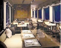 古木色為主,在墻上還掛有藏族特色的掛毯;餐車(chē)中設(shè)有軟席,主要是雙人桌和4人桌,從效果圖上看,餐車(chē)能夠提供各種中餐和西餐。