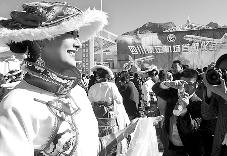 10月22日,一位藏族姑娘在康定機場首航儀式上。 新華社發(fā)