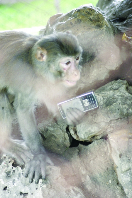 安報(bào)訊 您今后在安陽市三角湖公園游玩時(shí),可要對(duì)該公園內(nèi)的一只小猴多加小心,盡量不要用手機(jī)給它拍照,因?yàn)樗袚層慰褪謾C(jī)的“壞習(xí)慣”,據(jù)公園的工作人員介紹,到目前為止,它已經(jīng)搶走14部手機(jī) 。昨日,來自開封的孫小姐就見識(shí)了這只小猴的利害。