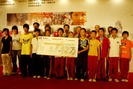 拍賣所得38.42萬元善款捐給少林寺慈幼院