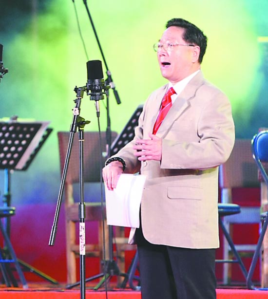 著名語(yǔ)言表演藝術(shù)家喬榛在吟誦《焦作山水詠志》