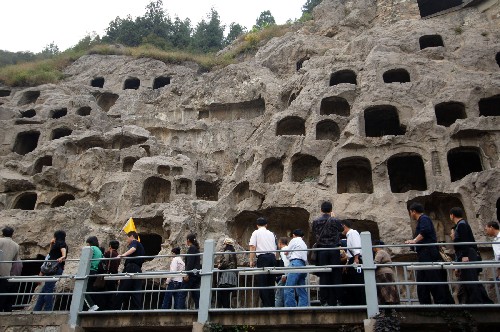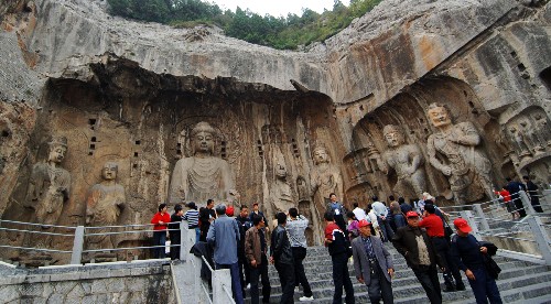 10月19日,河南龍門石窟景區(qū)內游人如織。 丁海濤/攝