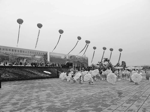 我省體育旅游市場有待進一步開發(fā)。圖為某縣舉辦的體育賽事開幕式。