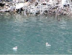 昨日上午,記者在鞏義浮戲山上馬臺(tái)水庫附近采訪時(shí),有村民說上馬臺(tái)水庫下游的一片水域內(nèi)有10多只鴛鴦,這些鴛鴦已經(jīng)出現(xiàn)好幾天了。按照村民的指引,記者來到發(fā)現(xiàn)鴛鴦的水域。這里是上馬臺(tái)水庫下游,水面不大,但清澈見底。水面上有4只顏色絢麗的水鳥在嬉戲,它們成雙入對(duì)的一會(huì)兒浮出水面,一會(huì)兒潛入水底,一直在遠(yuǎn)離山道的水域那邊活動(dòng),遠(yuǎn)遠(yuǎn)地躲開人們,山路上往來的汽車、摩托車聲音對(duì)它們沒有產(chǎn)生什么反應(yīng)。岸邊有一些游客和村民在駐足觀看,連聲稱奇。