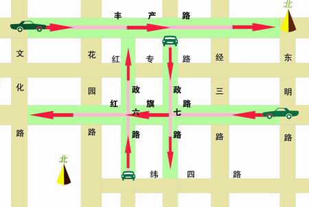 具體通行方式是:政六街(緯四路至豐產(chǎn)路段),由南向北單行;政七街(豐產(chǎn)路至緯四路段),由北向南單行;豐產(chǎn)路(文化路至東明路段),由西向東單行;紅旗路(東明路至文化路段),由東向西單行。以上4條道路,公交車也實(shí)行單行。