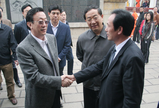 雨后的嵩山更加春意盎然。4月12日下午, 省委副書記、代省長郭庚茂等領(lǐng)導(dǎo)一行,視察少林寺武術(shù)館的旅游接待工作。