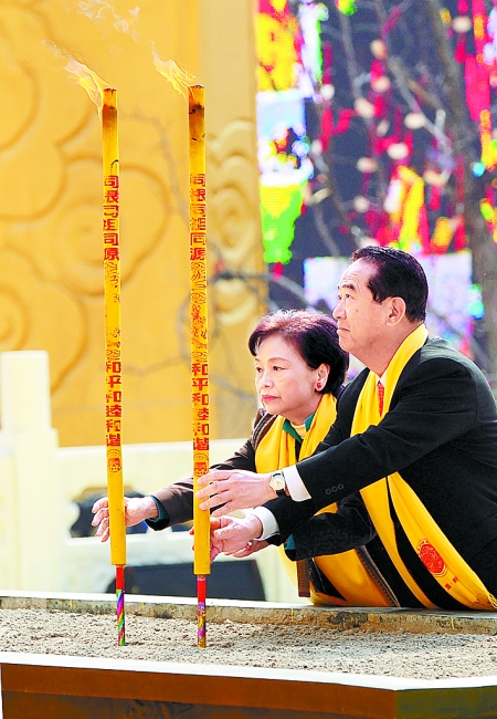 3月29日上午,親民黨主席宋楚瑜及夫人陳萬(wàn)水在己丑年黃帝故里拜祖大典儀式上點(diǎn)燃高香,向黃帝像敬香。記者 陳 偉 攝