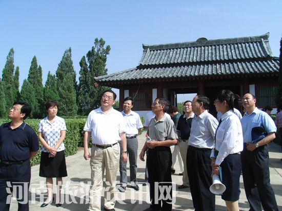 6月20—21日,河南省旅游局局長蘇福功帶領(lǐng)有關(guān)處室及河南農(nóng)大規(guī)劃設(shè)計院、河南社科院文物所的專家學(xué)者,冒著酷暑,到靈寶市調(diào)研旅游工作。中共三門峽市委常、市政府常務(wù)副市長蘇新華,市長助理張萬斌以及市旅游局、市文物局、靈寶市政府主要負(fù)責(zé)人陪同考察。