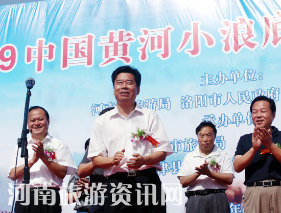 省旅游局副局長張鳳有(中)宣布小浪底觀瀑節(jié)啟動