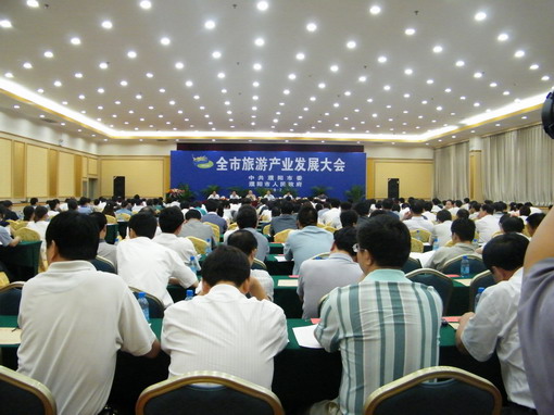7月15日,濮陽市旅游產(chǎn)業(yè)發(fā)展大會(huì)在濮陽迎賓館召開,傳達(dá)貫徹全省旅游產(chǎn)業(yè)發(fā)展大會(huì)精神,研究部署今后一個(gè)時(shí)期的工作任務(wù)和主要舉措,努力開創(chuàng)濮陽市旅游發(fā)展工作新局面。濮陽市委書記吳靈臣,市委副書記、市長王艷玲出席會(huì)議并作重要講話。市人大常委會(huì)主任李朝聘,市委常委、常務(wù)副市長王海鷹,市委常委、宣傳部長姜繼鼎,市政協(xié)副主席路留瑞出席大會(huì),副市長徐蘭峰主持會(huì)議。各縣區(qū)委書記、縣區(qū)長,市發(fā)改委、財(cái)政局、文化節(jié)、旅游局等相關(guān)部門主要負(fù)責(zé)人及全市旅游企業(yè)負(fù)責(zé)人近三百人到會(huì)。