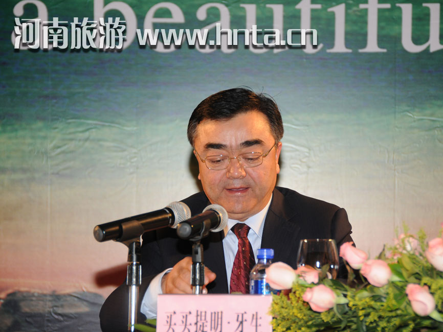 買買提明•牙生代表新疆維吾爾自治區(qū)黨委和人民政府,向長(zhǎng)期以來(lái)關(guān)心、支持新疆旅游業(yè)發(fā)展的各界朋友表示衷心的感謝。他說(shuō),新疆是舉世聞名的“歌舞之鄉(xiāng)”、“瓜果之鄉(xiāng)”和“黃金玉石之邦”。多年來(lái),自治區(qū)黨委、政府重視旅游業(yè)發(fā)展,努力以維護(hù)社會(huì)穩(wěn)定,促進(jìn)和諧發(fā)展為前提,積極開發(fā)旅游客源市場(chǎng),積極營(yíng)造良好的旅游環(huán)境。希望河南的朋友們能多到天山南北走一走,看一看。熱情好客的新疆各族人民將永遠(yuǎn)是你們最真誠(chéng)的好朋友!