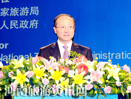 河南省旅游局局長(zhǎng)蘇福功(左一)等省旅游局領(lǐng)導(dǎo)參加市長(zhǎng)論壇主題會(huì)議