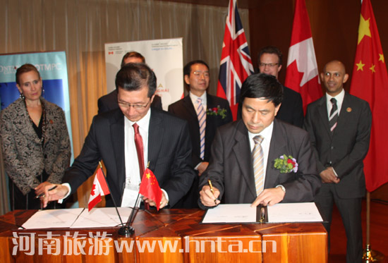 10月30日,省旅游局與加拿大安大略省旅游及文化部在上海舉行了《中國河南省旅游局與加拿大安大略省旅游及文化部友好合作備忘錄》簽字儀式。省長助理盧大偉出席簽字儀式并致辭。省旅游局局長范修芳與安大略省旅游與文化部部長陳國治分別在備忘錄上簽字。