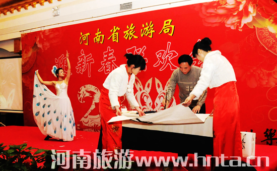 省旅游局辦公室舞蹈《雀之靈》與旅游協(xié)會(huì)書(shū)法同臺(tái)獻(xiàn)藝