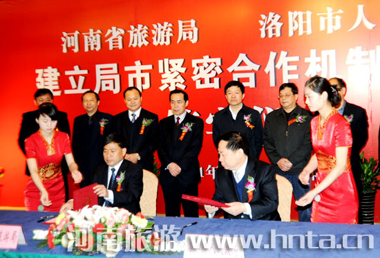 3月27日上午,省旅游局與洛陽市政府簽署了《關于建立局市緊密合作機制備忘錄》。省旅游局局長范修芳、副局長王玉寶,洛陽市領導郭洪昌、魏小東、李柳生、楊炳旭、陳衛(wèi)平等出席簽字儀式。