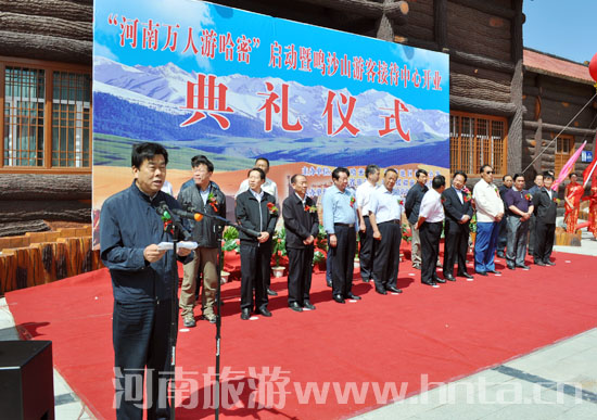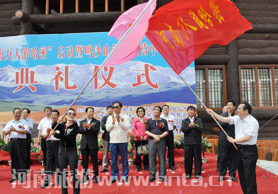 地處新疆東大門(mén)的哈密,正張開(kāi)熱情的臂膀,盛情歡迎來(lái)自旅游大省河南的游客。在豫哈兩地?cái)y手推動(dòng)下,6月9日上午,由河南省旅游局、哈密地區(qū)行署、河南援哈前方指揮部共同舉辦的“河南萬(wàn)人游哈密”活動(dòng)在哈密市白石頭風(fēng)景名勝區(qū)鳴沙山拉開(kāi)序幕。以河南省旅游局副局長(zhǎng)張鳳有為團(tuán)長(zhǎng)的“河南省赴哈密地區(qū)旅游考察踩線團(tuán)”全體成員參加了啟動(dòng)儀式。新疆維吾爾自治區(qū)人大副主任馬明成,哈密地區(qū)黨委書(shū)記郭連山,鄭州市政協(xié)主席李秀奇,新疆維吾爾自治區(qū)旅游局副局長(zhǎng)劉新福等相關(guān)部門(mén)負(fù)責(zé)同志出席啟動(dòng)儀式。