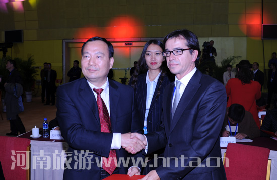 會上還簽訂了多項旅游合作協(xié)議。河南省旅游局寇武江局長與中國國旅集團有限公司黨委常委、中國國旅股份有限公司李任芷副總裁簽訂了戰(zhàn)略合作框架協(xié)議,與大西洋文化之路旅游組織項目合作方中國區(qū)負責人侯軼南先生簽訂了關于加強旅游合作的框架協(xié)議;鄭州市旅游局張杰峰局長與西班牙馬德里市旅游部門負責人阿爾博特•莫尚特•索瑪羅先生簽訂了旅游合作協(xié)議;在旅游項目簽約方面,此次共簽約60個旅游項目,總投資額999.9億元。其中,企業(yè)投資項目34個,簽約總金額884.3億元;銀行與旅游企業(yè)融資項目26個,簽約總金額115.6億元。