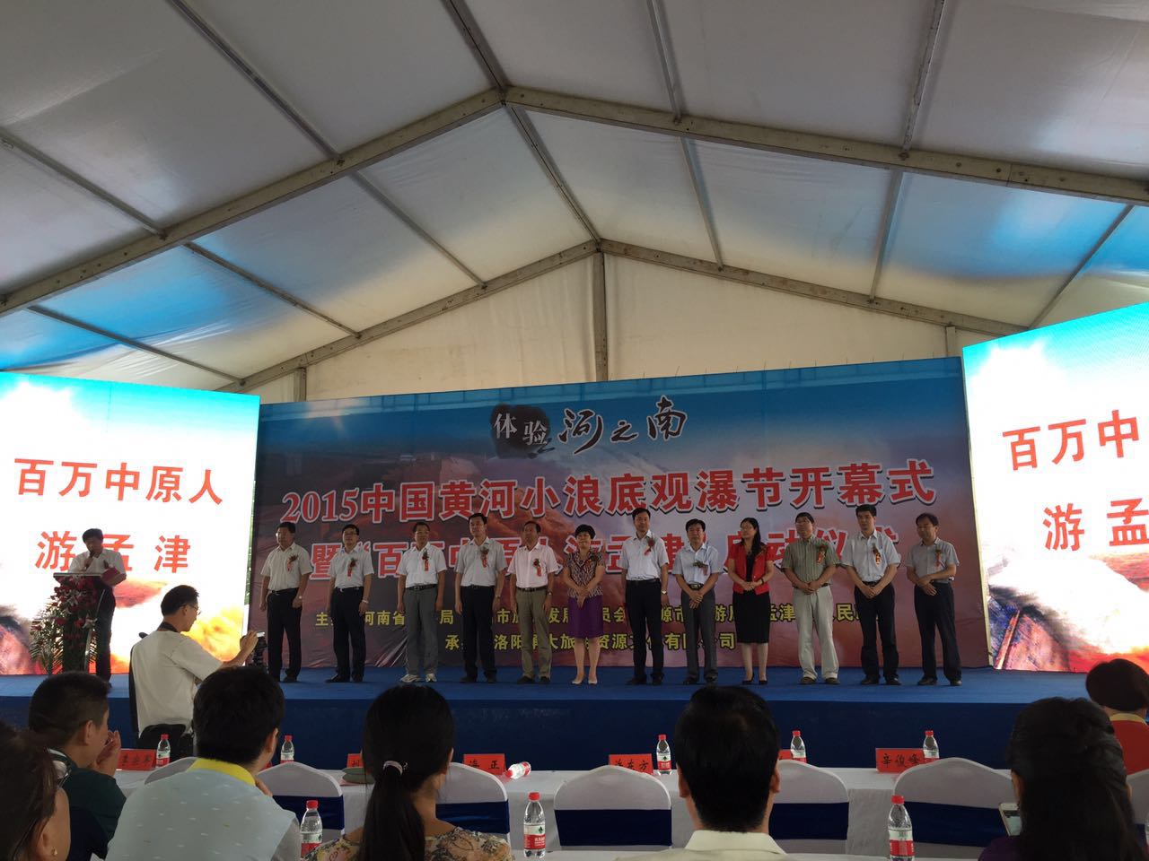 6月29日,2015中國(guó)黃河小浪底觀瀑節(jié)開(kāi)幕式暨“來(lái)孟津耍吧——百萬(wàn)中原人游孟津”啟動(dòng)儀式在孟津舉行,河南省旅游局副巡視員李宗軍出席開(kāi)幕式。