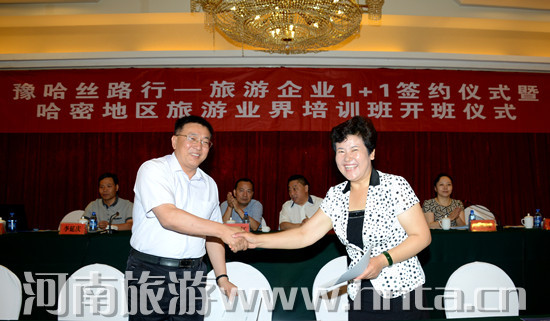 “豫哈絲路行—豫哈旅游行業(yè)1+1”幫扶活動。河南省旅游局組織旅游行政管理部門、5A級景區(qū)、5星級酒店、組團旅行社負責人(10家),與哈密地區(qū)旅游局、旅游企業(yè)開展1+1結對幫扶活動。6月28日,舉行了旅游企業(yè)1+1幫扶簽約儀式,協(xié)助哈密地區(qū)旅游行政管理部門更新管理理念,轉變發(fā)展方式,創(chuàng)新發(fā)展模式;扶持旅游企業(yè)提升品質、上檔升級,做大做強旅游企業(yè)在產(chǎn)業(yè)發(fā)展當中的主體地位。