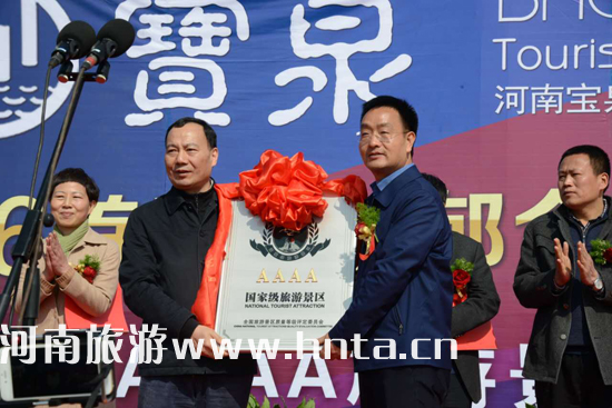 3月26日,新鄉(xiāng)寶泉旅游度假區(qū)國家“AAAA級旅游景區(qū)”授牌儀式在新落成的寶泉游客服務中心隆重舉行,河南省旅游局局長寇武江出席儀式并為景區(qū)頒發(fā)4A級旅游景區(qū)牌匾。“中國·寶泉2016首屆山地郁金香踏青賞花節(jié)”同時開幕。