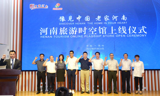 9月26日,河南省旅游局局長寇武江,同程旅游創(chuàng)始人、同程國旅CEO吳劍在蘇州同程大廈共同啟動“河南旅游時空館”。鄭州、開封、洛陽、平頂山、安陽、鶴壁、新鄉(xiāng)、濮陽、漯河、三門峽、南陽、信陽、駐馬店、濟(jì)源旅游局(委)負(fù)責(zé)人共同見證了“河南旅游時空館”的啟動。河南省旅游局又一新媒體平臺正式上線,這也是河南重點(diǎn)打造的旅游目的地營銷新平臺。