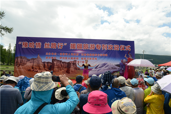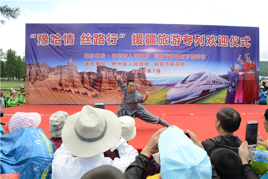 今年是“豫哈情 絲路行”三年主題旅游援疆活動(dòng)的第一年。產(chǎn)業(yè)援疆,旅游先行。據(jù)河南省旅游局副局長周耀霞介紹,今年河南旅游援疆首次提出大援疆概念,以河南為主要客源市場(chǎng),面向全國引進(jìn)旅游專列,全年將有60趟援疆旅游專列開抵哈密,輸送接待游客5萬余人,其中約有三分之一是河南游客專列。