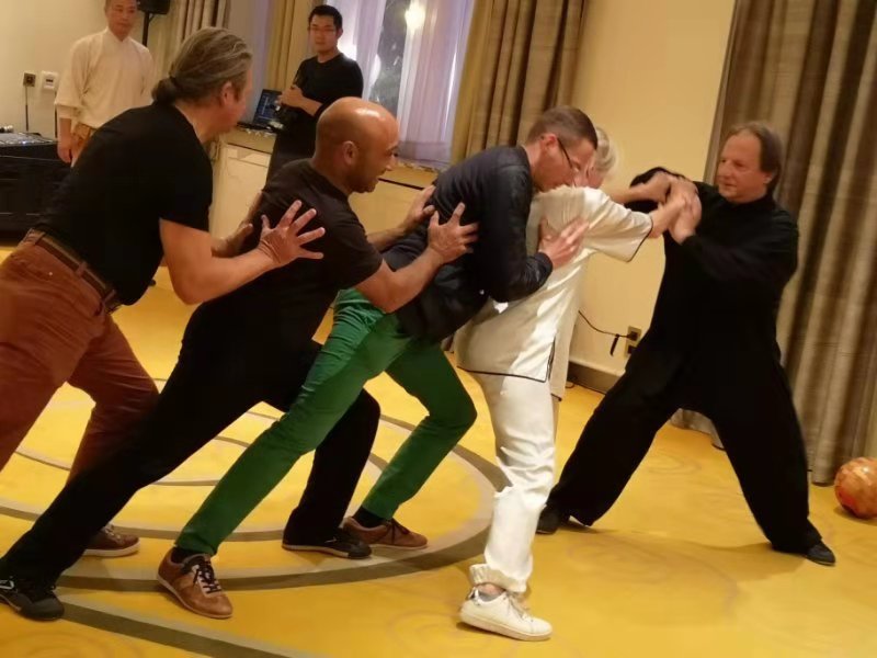 讓老瓦爾特•托克有底氣的,是他已經(jīng)練習了33年的中國功夫。1987年,他第一次來到中國,在北京街頭看到有人習練太極,太極的神韻,讓他感覺不可思議,等再接觸到少林拳,又感受到另一番強烈的震撼力,這讓他果斷地放棄了之前練習的空手道,轉(zhuǎn)而開始習練太極拳和少林拳。“中國功夫有很大不同,功夫囊括了一切,器械、擒拿、哲學等,包羅萬象”。