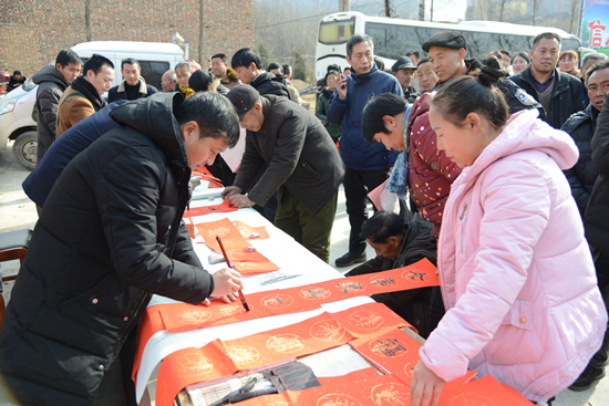 此次慰問(wèn)活動(dòng),不僅為貧困家庭送去了慰問(wèn)品,隨同慰問(wèn)的書(shū)法家還現(xiàn)場(chǎng)為貧困群眾撰寫(xiě)春聯(lián),省豫劇院二團(tuán)的專(zhuān)業(yè)演員也為天橋溝村的父老鄉(xiāng)親帶來(lái)了一場(chǎng)精彩的表演。