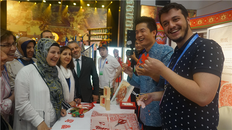 6月27日下午,“中國共產(chǎn)黨的故事”專題宣介會主題展在鄭州市黃河迎賓館舉行,河南省非物質(zhì)文化遺產(chǎn)展區(qū)采取動靜結(jié)合的展示方式,緊扣“中國共產(chǎn)黨的故事--習近平新時代中國特色社會主義思想在河南的實踐”活動主題,精心設(shè)計每個互動環(huán)節(jié)和每件展示作品,讓來自全球35個國家、26個政黨的200多名外國友人從多個角度體驗、感知河南傳統(tǒng)文化的獨特魅力,活動引起國內(nèi)外嘉賓的廣泛關(guān)注和一致好評。
