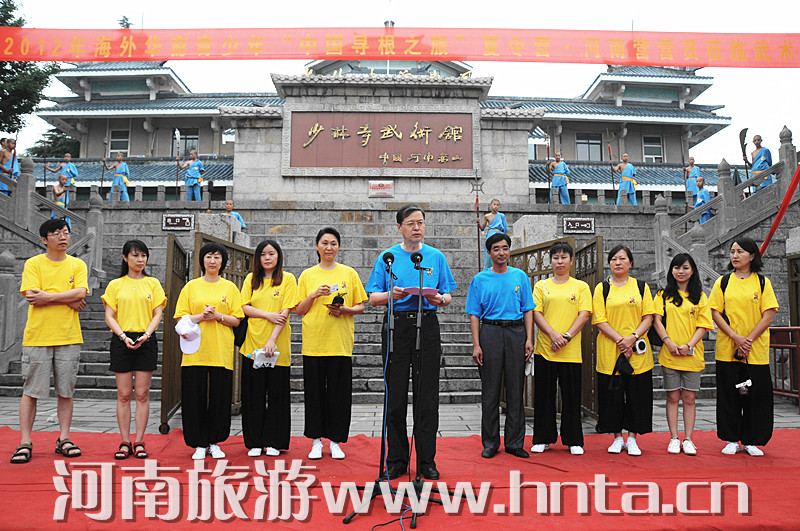 2012年7月14日上午,由國務(wù)院僑辦主辦、河南省人民政府外僑辦承辦的2012華裔青少年“中國尋根之旅”夏令營(河南營),在少林寺武術(shù)館順利開營。河南省人民政府外僑辦副巡視員王自杰和武術(shù)館副館長郜明超等共同出席了開營儀式。110名海外華裔青少年將在天地之中的嵩山腳下開展為期8天的“中國尋根之旅”活動。