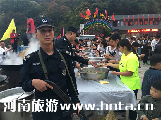 危難之時(shí),欒川縣旅游警察聯(lián)合老君山景區(qū)出手相助,為游客送上了熱騰騰的“暖身湯”。并持槍執(zhí)勤,維護(hù)“暖身湯”發(fā)放現(xiàn)場(chǎng)和排隊(duì)等候下山游客的秩序,護(hù)衛(wèi)周全。
