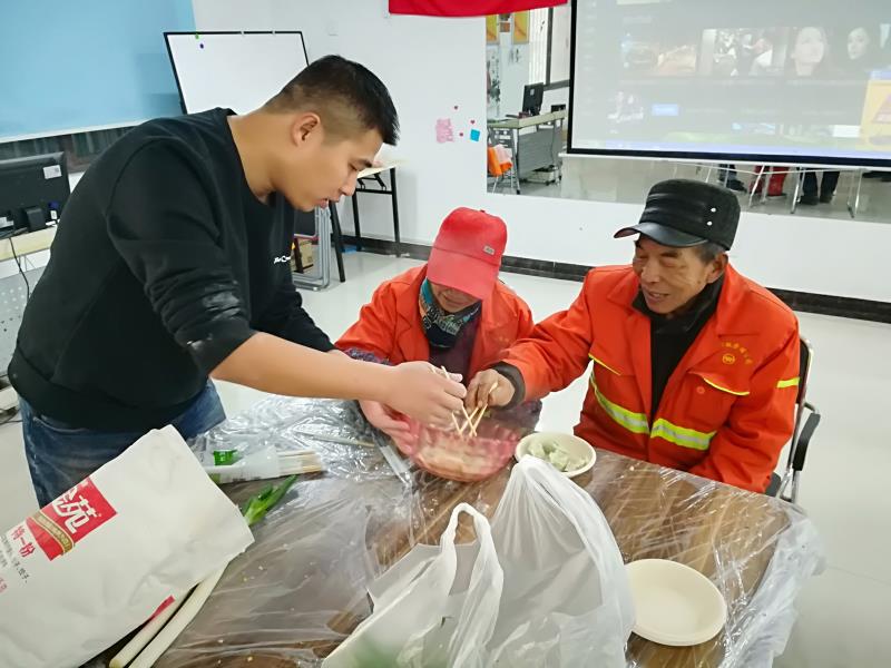 加水,下鍋,翻翻兒,不一會兒,活動室便香氣四溢。第一鍋餃子,特別邀請社區(qū)環(huán)衛(wèi)工人品嘗,感謝他們的辛勤勞作營造的良好的社區(qū)環(huán)境,也希望他們在忙碌的工作中感受到社區(qū)的關(guān)愛和節(jié)日的問候。隨著一碗碗餃子的出鍋,品嘗著各種形狀的餃子,嘮著家常,溫馨的活動使人有幸福美滿大家庭的感覺。