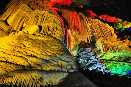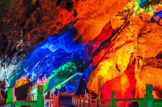 停好車,坐景區(qū)門口的游覽車很方便就到達景區(qū)大門。大門口有長長的臺階,上去臺階就到了洞口。由于是旅游的旺季,在洞口需要排隊等候了一段時間。進入洞里,真的是超級涼爽,溫度大約只有18度左右。要提醒大家的是,如果有老人和小孩,還是應該做好準備,提前帶好衣服的,以防溫差過大,容易感冒。洞內的景觀還是很不錯的,對于沒有去過溶洞的我來說,全程保持驚訝狀態(tài),伴隨著五光十色的燈光,各種造型的石筍、鐘乳石,宛如仙境一般。