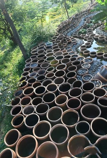 “缸是彩陶文化的鼻祖。誕生了仰韶文化的這片土地上,5000年窯火不熄,見證中華文明和陶瓷文化的發(fā)展。”陶藝村創(chuàng)建人郭愛和說,“選擇用陶缸來裝點山村,是為了表達對中國傳統(tǒng)文化的敬仰,以吸引更多的人關(guān)注貧困山村。”
