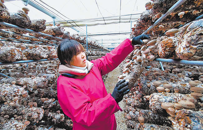 12月17日,盧氏縣橫澗鄉(xiāng)雷家村村民強(qiáng)飛英在扶貧搬遷社區(qū)配套的香菇基地摘香菇。為讓3.38萬(wàn)搬遷群眾搬得出、穩(wěn)得住、能致富,盧氏縣在全縣55個(gè)搬遷安置點(diǎn)建起產(chǎn)業(yè)基地71個(gè),建成扶貧車間23個(gè),實(shí)現(xiàn)了配套產(chǎn)業(yè)全覆蓋。(程專藝 攝)