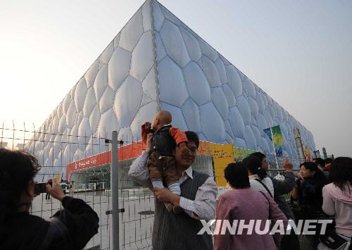 9月29日,游客在“水立方”外拍照留念。新華社記者 李文/攝