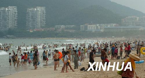10月1日,海南三亞的海灘上游人熙熙攘攘。新華社記者 郭程/攝
