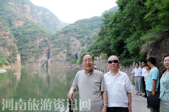 2009年6月15-16日,洛陽黛眉山世界地質(zhì)公園核心景區(qū)——龍?zhí)洞髰{谷舉辦了“名人名家訪名山”活動,原中宣部副部長,文化部黨組書記、代部長、著名詩人賀敬之先生(上圖左一)及夫人——新中國文壇泰斗、著名詩人、兒童文學家、報告文學家、創(chuàng)作家柯巖女士等名人名家應(yīng)邀參加了活動。 賀敬之為龍?zhí)洞髰{谷題詩《游覽黛眉山世界地質(zhì)公園龍?zhí)洞髰{谷景區(qū)急就歌訣八章》: