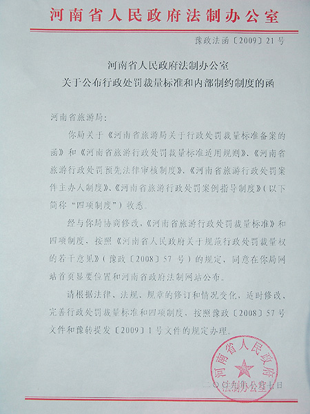 《河南省旅游行政處罰裁量標(biāo)準(zhǔn)》和內(nèi)部制約制度