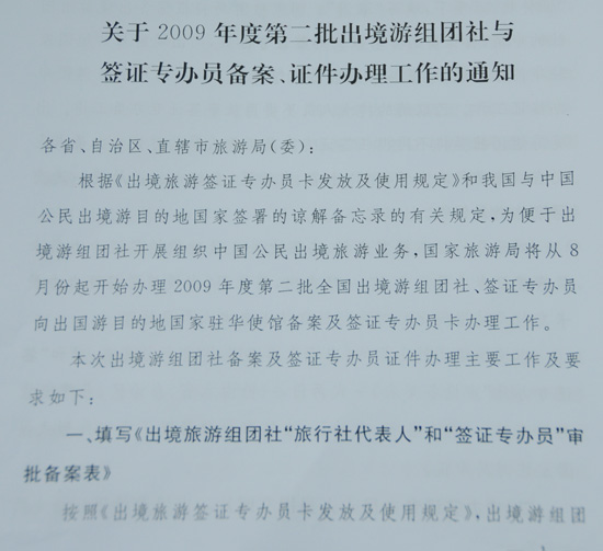 關于2009年度第二批出境游組團社與簽證辦專員備案、證件辦理工作的通知